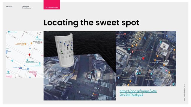 “We loved the idea of using the windows to create an aerial cityscape, and plotting precise, choreographed journeys within it – but bringing this to life as an anamorphic projection wasn’t without its challenges. With no physical measurements of the building or exact screen location, we had to find an entirely new approach to bring this idea to life. We ran a shoot in Times Square and used photogrammetry to combine shots of the screen from a multitude of known locations. With some clever maths that took factors like focal length and lens distortion into account we were able to accurately plot the physical size and position of the screen to achieve this breathtaking effect.” – James Sparkes, Creative Director, Make Associates