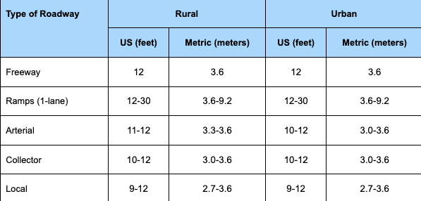 Road lanes are approximately 4m wide (as per figure 1 below, source fhwa). Therefore the accuracy requirement for GNSS is to locate you in the lane -ie with a maximum error of ±2m, so the position will always fall inside the lane. However, specifying the maximum error is not enough, we need to specify also the probability or the percentage of the cases in which the error will be between 1m and 2m, as there will always be some limitations and edge cases where accuracy degrades. Here is where every OEM may choose a different value for their specification, but a standard high probability is 95%, which equates to 2𝞂 (two standard deviations) in a normal distribution like the error distribution we are dealing with here.