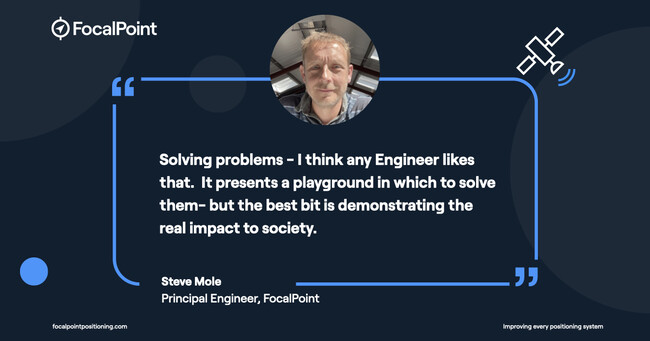 Engineers tend to love problem solving and I am certainly one of them. At Focal Point our daily challenges involve optimising our software to make it run faster and use less memory – this ensures our overall solution has lower carbon emissions while maintaining the improvement in GNSS accuracy. We act as the technical interface with our customers and commercial teams which requires a deep understanding of both the physics and engineering at the same time.