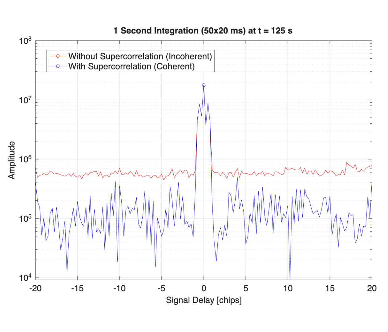 High-rate PNT solutions can be augmented with long motion-compensated coherent correlations provided by Supercorrelation. Here we have shown correlation outputs for 1 second and 5 second integrations reported at rates of 1 Hz and 0.2 Hz respectively; however, the length of integration can be configured during runtime – for example, in response to a change in signal environment or upon the detection of a potential jamming or spoofing event – and performed over a rolling window that reports at a faster rate. Alternatively, the high-accuracy, lower rate S-GNSS measurements can be fused with higher-rate sensor data such as from inertial measurement units or vehicle odometry, enabling high-rate PNT solutions with much greater resilience to spoofing and meaconing attacks.