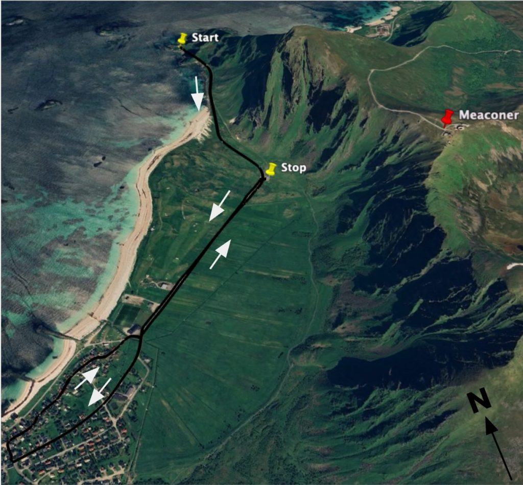 Meaconer location and route driven during Jammertest 2025 meaconing scenario. Used for illustrative purposes only. Image credit: Google Earth, Image ©Airbus, Image IBCAO.