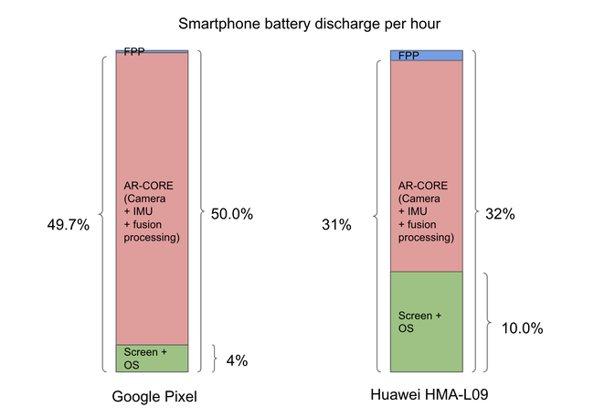 Processing the accelerometer, gyroscope, and other sensor data within a world-leading human motion modelling system allows Focal Point to provide an understanding of motion through space at much lower battery consumption than AR headsets. Our trials against AR Core have demonstrated that D-Tail has between 30x and 50x lower battery consumption than this flagship vision-based location technology. The consumption difference depends on which smartphone the test is carried out on – AR Core’s battery consumption varies across different devices.