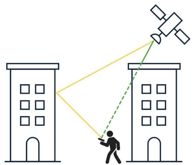 Imagine you are in Times Square, New York City; there can be more buildings than sky visible – far from ideal for GNSS. Some satellites will be in Line of Sight from the receiver, but many others will be blocked and their signal will arrive to the receiver after being reflected off of the buildings. A standard GNSS L1+L5 receiver will measure the LoS signals from the unblocked satellites and the reflected signals from the blocked satellites and take all for clean LoS signals. However, the path length of the reflected signals will be longer than it should and can lead to position errors. The impact of these errors on end users are wide ranging, but include hindering critical to life safety applications , such as emergency services locating persons in need of assistance, or decreasing the efficiency of ride-hailing applications.