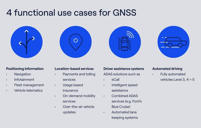 Fig 1: the 4 main use cases for GNSS in vehicles