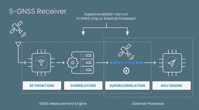 S-GNSS® Auto is powered by our award winning Supercorrelation technology, and works by enhancing the GNSS receivers measurement engine. This means that an implementation of S-GNSS is tightly coupled to the specific receiver, and is why we need to work with the chip manufacturers to bring S-GNSS to OEMs. Once the specific implementation is developed, it may be possible to run S-GNSS downstream from the GNSS chip, depending on the surrounding architecture.