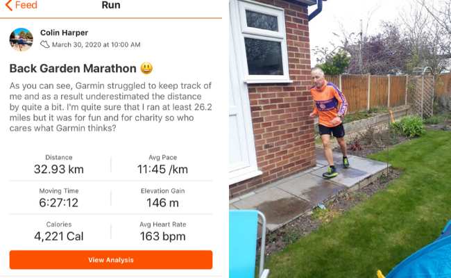 Another example: Ultra Runner Colin Harper ran a marathon in his backyard, running the precise amount of lengths of his 7m yard to tally to 42 km. And yet his Garmin trace on Strava estimates him to have run a full 10kms less – get back out there and keep going Colin!