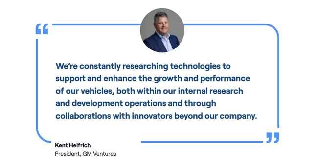 “We’re constantly researching technologies to support and enhance the growth and performance of our vehicles, both within our internal research and development operations and through collaborations with innovators beyond our company.” said Kent Helfrich, President, GM Ventures.