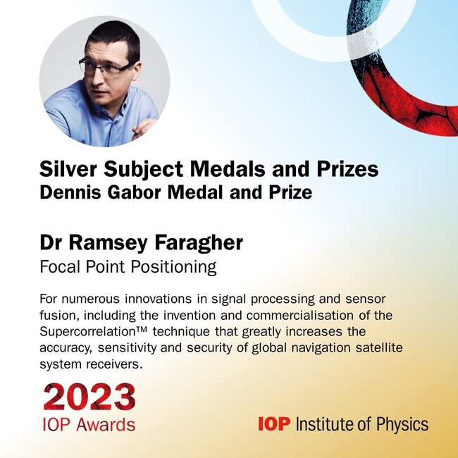 The judges at this year’s IOP annual awards awarded our Founder, President & CTO, Dr Ramsey Faragher with the Dennis Gabor Medal and prize for innovations in signal processing and sensor fusion.