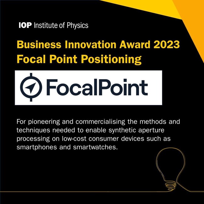 Today we’re delighted to announce that Focal Point has picked up the Institute of Physics (IOP) Business Innovation Award for “pioneering and commercialising synthetic aperture processing on low cost consumer devices such as smartphones and smartwatches”.