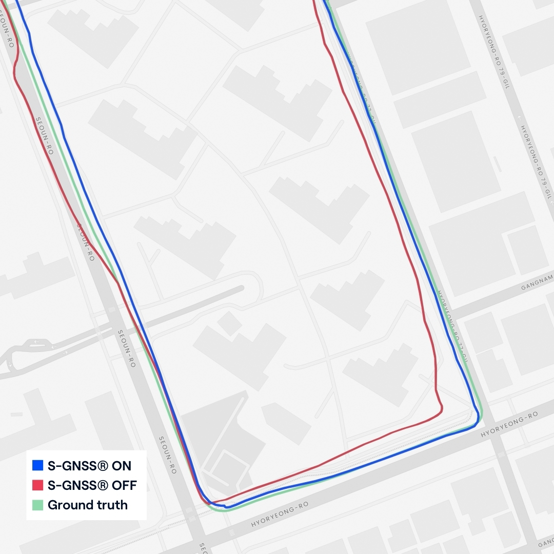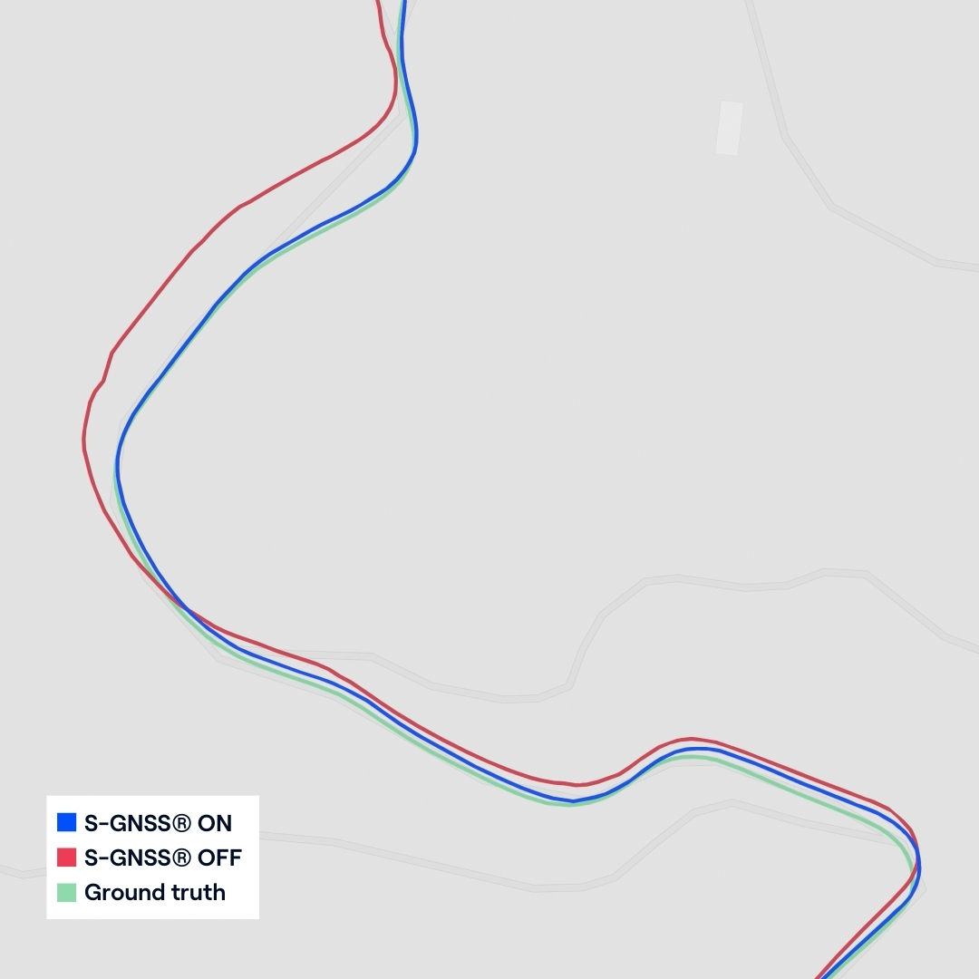 S-GNSS® Auto, integrated onto STMicroelectronics’ Teseo receivers, demonstrating improvements in vehicle positioning accuracy